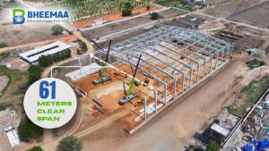 This facility represents a milestone in India’s food-processing infrastructure, demonstrating Bheemaa Infra’s expertise in large-span PEB construction and industry-specific engineering standards for high-performance production facilities.